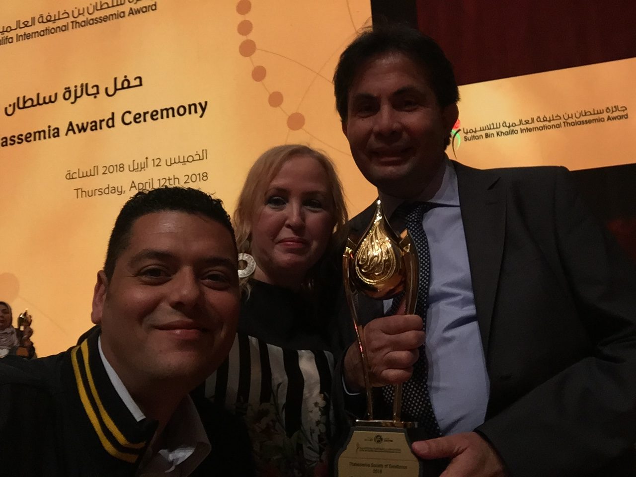 Το βραβείο παρέλαβε από τον Πρόεδρο της Επιτροπής Γενικής Γραμματείας του Sultan Bin Khalifa, ο Πρόεδρος της Ελληνικής Ομοσπονδίας Θαλασσαιμίας κ. Βασίλης Δήμος -επικεφαλής αντιπροσωπείας μελών του Διοικητικού Συμβουλίου της ΕΟΘΑ- οι οποίοι μετέβησαν για την απονομή στα Ηνωμένα Αραβικά Εμιράτα.
